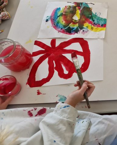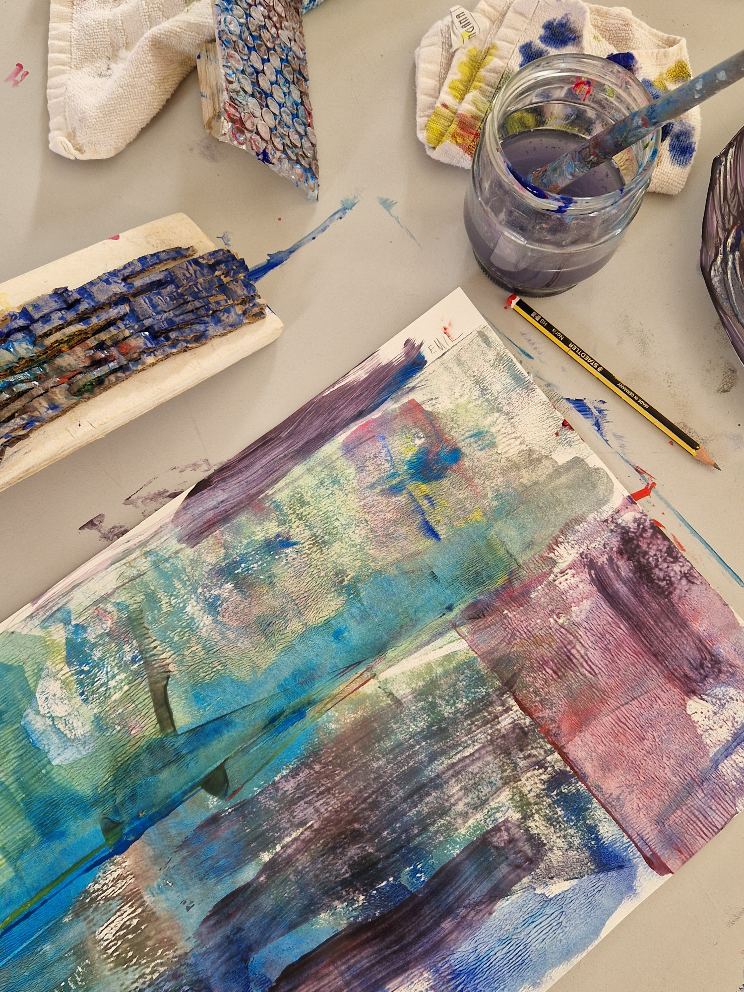 Du darfst alles ausprobieren und die Materialien und Techniken selbst entdecken! Hier darf gekleckst und gematscht werden!